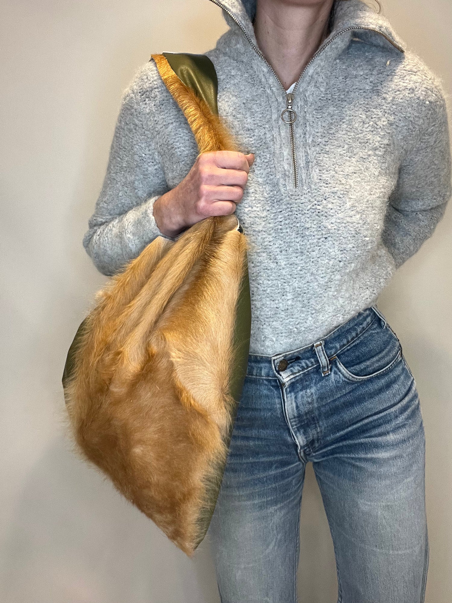 Measuring in at 17" wide x 14" long inseam this bag is your GRAB AND GO! Fill her up with all the things you need for the day, your travels and anything else you might need a huge bag for! Bonus, she folds up real nice if you want to pack her on a trip.