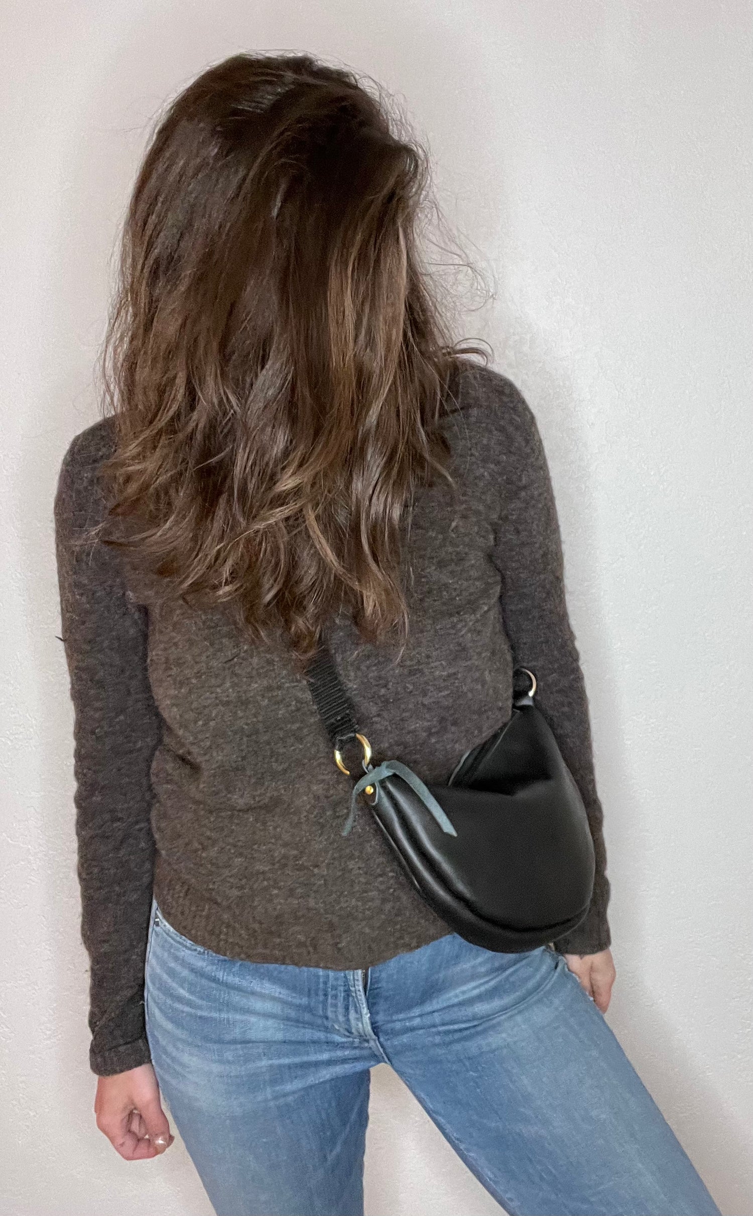 Hands free is everything! Big enough to carry your essentials, this bag is a wardrobe must. Sling her cross body in the front or back or wear her on your arm or shoulder.